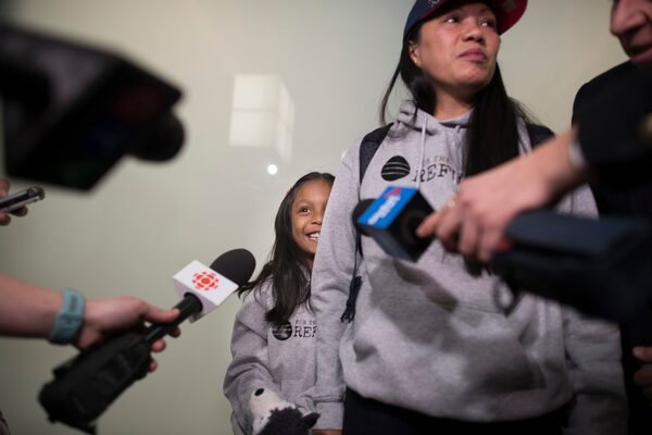Toronto, March 25: Keana Rodel, 7, stands beside her mother, Vanessa Rodel, at a news conference after their arrival from Hong Kong. Vanessa Rodel was one of a number of refugees who helped whistleblower Edward Snowden when he was a fugitive from U.S. authorities.