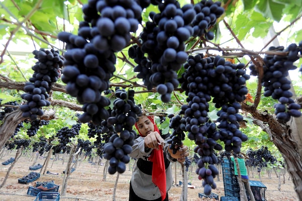 A girl harvests grapes at a farm in El-Menoufia governorate, north of Cairo, Egypt, June 16, 2022.MOHAMED ABD EL GHANY/Reuters