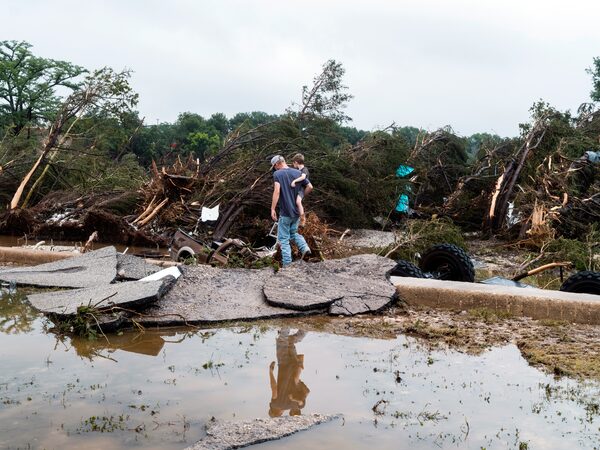 Local residents survey the wreckage left by the flooded Guadalupe River in Louise Hayes Park in Kerrville, Texas, on Saturday, July 5, 2025. Nearly 70 people died in fast-moving floodwaters in Central Texas, including children.JORDAN VONDERHAAR/The New York Times News Service