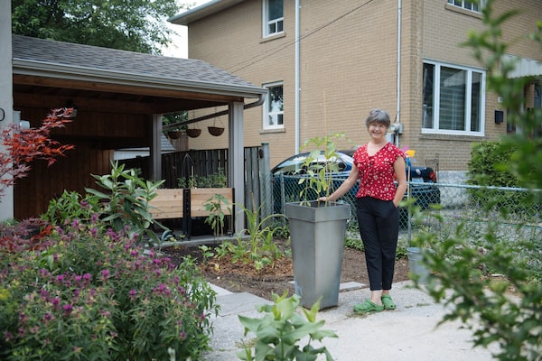 Janet Joy Wilson poses for a photo in her driveway, which she is gradually depaving and converting into a garden, in Toronto, Saturday, July 18, 2020.Galit Rodan/The Globe and Mail