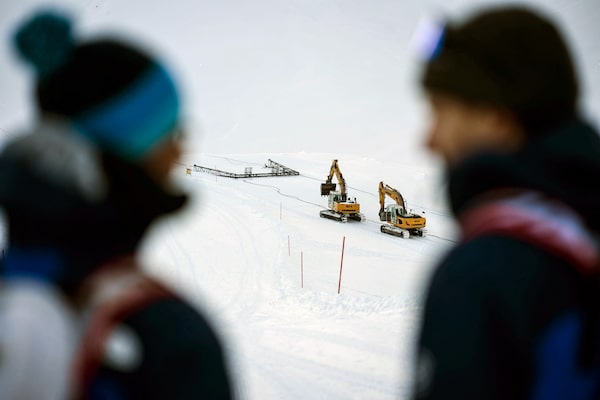 People watch the Schneefernerkopf ski lift being demolished at the Zugspitze ski resort in southern Germany on Friday. The lift has been rendered inoperable because the glacier base has melted and the terrain has become steeper.PHILIPP GUELLAND/AFP/Getty Images