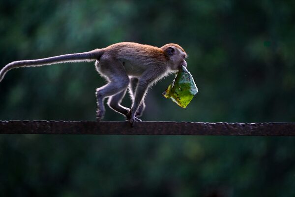 A long-tailed macaque walks along the edge of a fence in Japakeh in Indonesia's Aceh province on April 29, 2023.CHAIDEER MAHYUDDIN/AFP/Getty Images