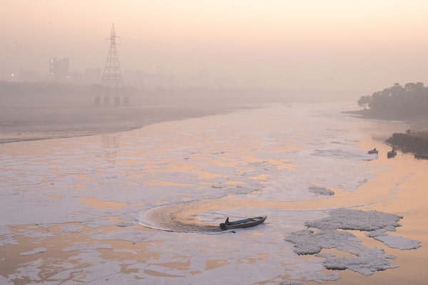 Haze caused by pollution blankets the sky over the Yamuna River on Dec. 3 in New Delhi. The Indian capital's air quality index reached 376 – classified as “very poor” to “severe” – with fine particulate matter levels recorded at more than 20 times the World Health Organization's safe limits. Health experts have declared conditions “extreme and life-threatening,” as 30 million residents contend with persistent headaches, eye irritation and respiratory distress.Anindito Mukherjee/Getty Images
