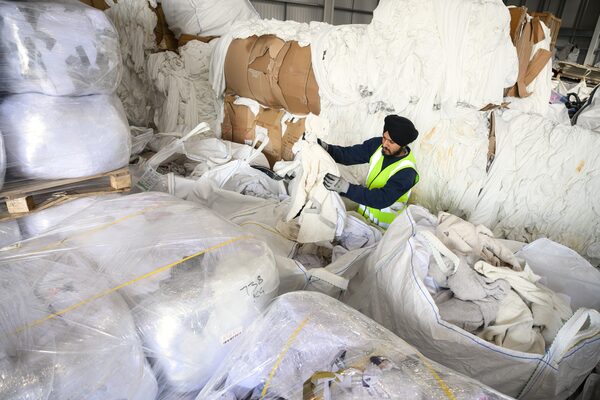 Kamalpreet Singh works with the Project Re:Claim system, the first commercial-scale polyester recycling plant of it's kind, on Febr. 28, 2025 in Kettering, England. Project Re:Claim is a joint collaboration between the Salvation Army and Project Plan B. The system recycles unwanted polyester fabrics down to a form of pellet, which can then be spun into yarn or be used in other industrial applications. It has recycled more than 1,000 tonnes of polyester in its first year of operation, and aims to double that in time.Leon Neal/Getty Images
