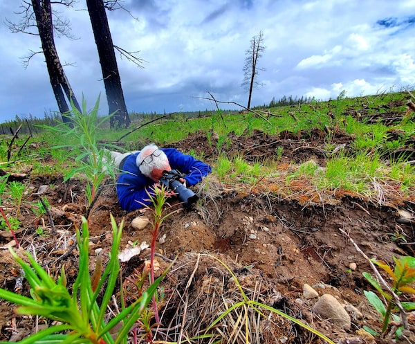Freelance photog Dennis Owen taking a photo of baby treesAleece Laird, Forest Enhancement Society of British Columbia/Supplied