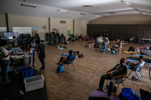People seeking shelter from the heat rest at the First Congregational United Church of Christ cooling center on July 14, 2023 in Phoenix, Arizona. The church opened its doors, providing water, food, and refreshments for residents seeking relief from the heat. Record-breaking temperatures continue soaring as prolonged heatwaves sweep across the Southwest.Brandon Bell/Getty Images