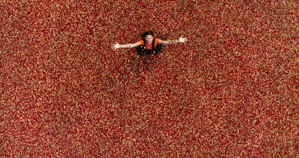 Evelyn Delacretaz, 10, throws cranberries into the air after taking 'the plunge' at Muskoka Lakes Farm & Winery in Bala, Ont., on the first day of the harvest in September.Christopher Katsarov/The Globe and Mail