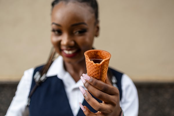 Kenyan innovator and 'ecopreneur' Sheryl Mboya, 26, has created edible plates and cups, ideas born of her dislike of plastic pollution in Nairobi.TONY KARUMBA/AFP/Getty Images