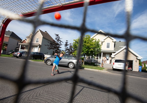 The program has turned some residential streets into boisterous play zones of kids shooting baskets, playing hopscotch, practising slapshots and skipping rope. On Donat-Corriveau St., seven hockey nets line the curb. Some days, there are 20 kids on the crescent playing hockey, said David Vachon, a father of three kids, 10, 13 and 16.