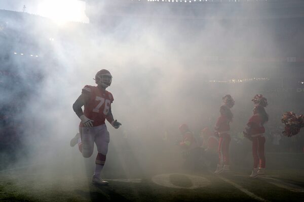 Kansas City Chiefs' Laurent Duvernay-Tardif is introduced before the NFL AFC Championship football game against the Tennessee Titans on Jan. 19, 2020, in Kansas City, Mo.Jeff Roberson/The Associated Press