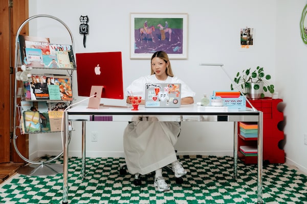 Designer Dani Roche gets down to work at the USM Haller Table that serves as her desk in her home office in Toronto.Galit Rodan/The Globe and Mail
