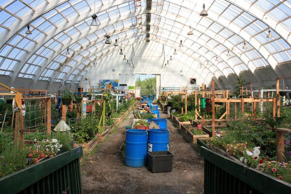 Rows upon rows of raised beds growing tomatoes, zucchini, beans, wildflowers and herbs line the inside of the Inuvik Community Greenhouse.
