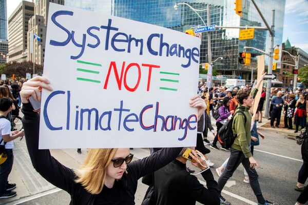People take part in a climate change strike in Toronto, on Sept. 27, 2019.CARLOS OSORIO/Reuters