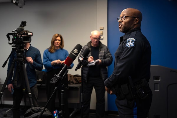Constable Martin Cromwell of the Halifax Regional Police force speaks to reporters in Halifax on Feb. 24.Darren Calabrese/The Canadian Press