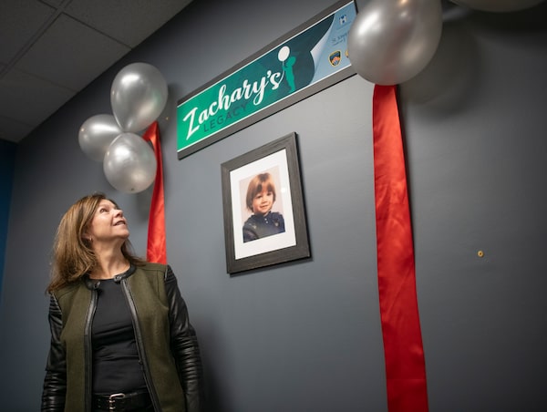 Dr. Lori Triano-Antidormi stands near a photograph of her son Zachary, after a press conference in Hamilton, Ont. on Jan 21. In 1997, Zachary, who was two and a half years old, was murdered by a neighbour outside his home and Zachary’s Legacy will be a new hub for mental-health outreach workers.Fred Lum/The Globe and Mail