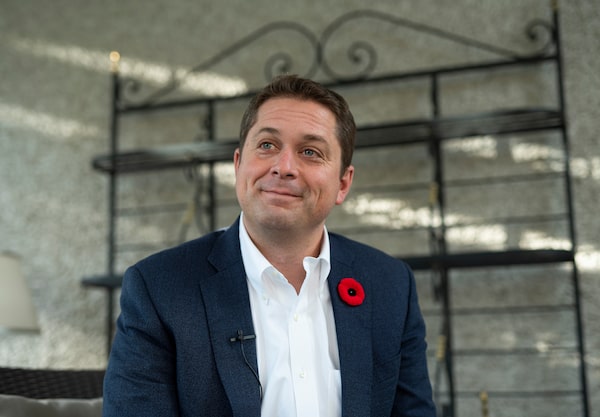 Scheer participates in an interview reflecting on the 2019 Federal election, in Ottawa, on Oct. 24, 2019.Justin Tang/The Canadian Press