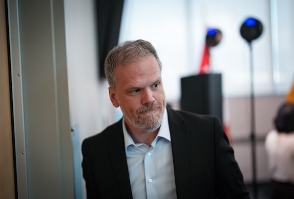 Federal Health Minister Mark Holland leaves after a news conference in Vancouver, on July 23.DARRYL DYCK/The Canadian Press
