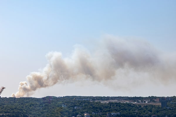 Smoke billows from a wildfire near the Susies Lake Area of Halifax is seen, Tuesday, Aug. 12.Kelly Clark/The Canadian Press
