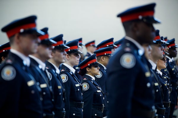Toronto Police cadets stand at attention at a graduation ceremony. Liaising with police is an important part of Mr. Hashim's job.Cole Burston/The Globe and Mail/The Globe and Mail