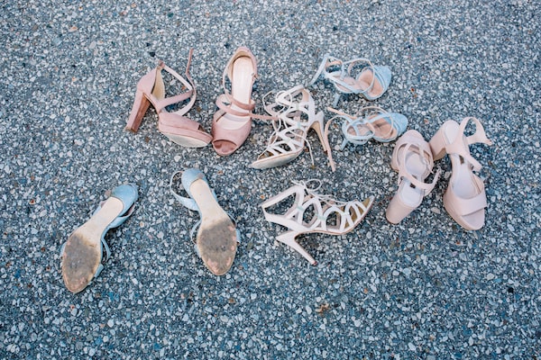 Five pairs of prom shoes from Centennial Collegiate Vocation Institute seniors Sarah Ragbir, Jasmine Burke, Abby Mason, Kadyn Kapitain and Daniella Casaretto piled up before a parking lot dance break.Sarah Mortimer/The Globe and Mail