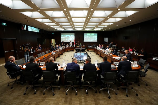 Scott Smith and Brian Cairo join fellow witnesses as they appear at the Standing Committee on Canadian Heritage in Ottawa on July 27, looking into how Hockey Canada handled allegations of sexual assault and a subsequent lawsuit.Sean Kilpatrick/The Canadian Press