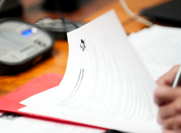 A Hockey Canada document is reviewed by a Member of Parliament during a House of Commons Committee on Canadian Heritage hearing in Ottawa on Oct. 4, 2022.Sean Kilpatrick/The Canadian Press