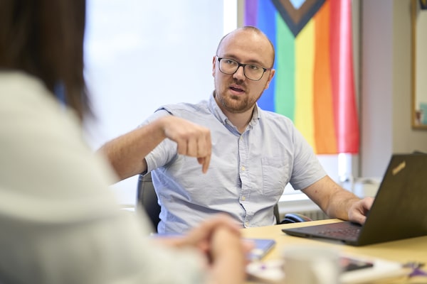 Landon Kenney, male allies educator at the Sexual Assault Support Centre of Waterloo Region, has conducted training courses with hockey teams.Geoff Robins/The Globe and Mail