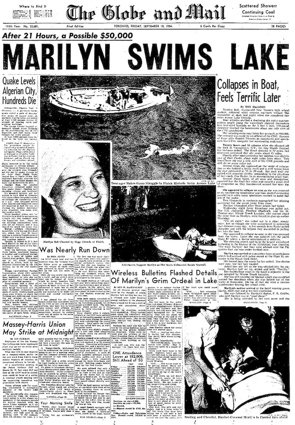 The Globe reports on Sept. 10, 1954, after Marilyn Bell completed her swim across Lake Ontario.
