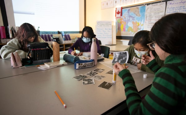 Grade six students work with course materials during a social studies class on the Holocaust.Fred Lum/The Globe and Mail