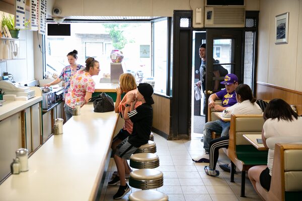 The restaurant is small enough – about as wide as a train’s dining car – to encourage banter. Deanne came in on her day off recently with her young daughter and began teasing an elderly regular named George, who sat chuckling on his stool, nursing a coffee. “Hi, George! Want a kid?” she said, gesturing at her daughter. “She’s nice!”