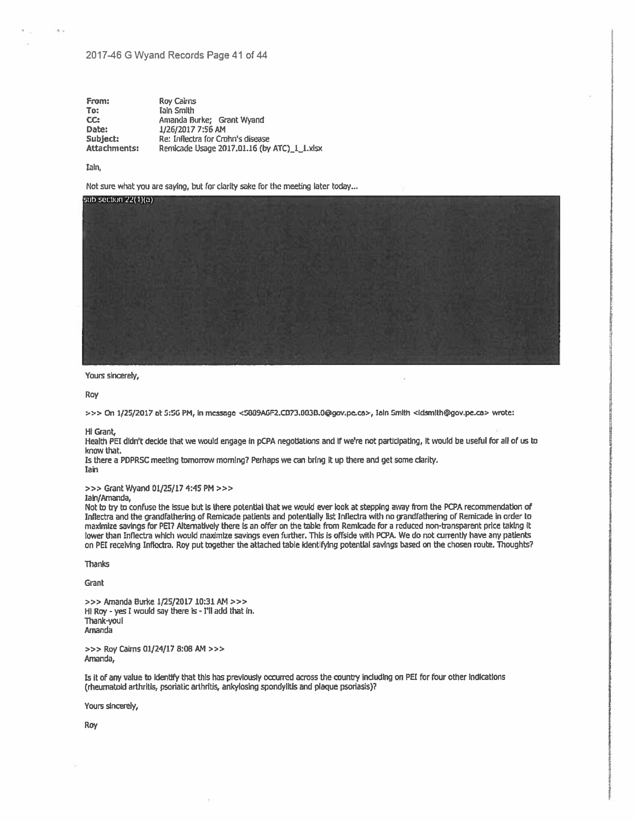 But voluntary collective action apparently has its limits. In a Jan. 25, 2017, e-mail to colleagues, Grant Wyand, then PEI’s acting director of pharmacare, floated the idea of accepting a Janssen offer by which the company would provide Remicade at less than the cost of Inflectra in exchange for the PEI government agreeing to cover Remicade for new patients on the island. “This is offside with pCPA,” Mr. Wyand noted.