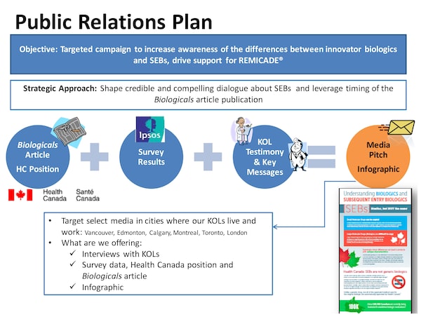 In another PowerPoint presentation, this one produced for Janssen’s Ontario government-relations and community-relations teams, staff laid out their strategy for influencing patient-advocacy groups, provincial officials – and doctors. This was two months before Health Canada approved Inflectra as a Remicade biosimilar.