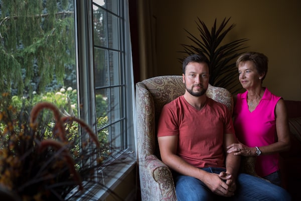 Adam Scully, shown with his mother, Ruth, at their Toronto home, is a hockey goalie turned TSN producer who was prescribed the drug Remicade to treat Crohn's disease.Chris Donovan/The Globe and Mail