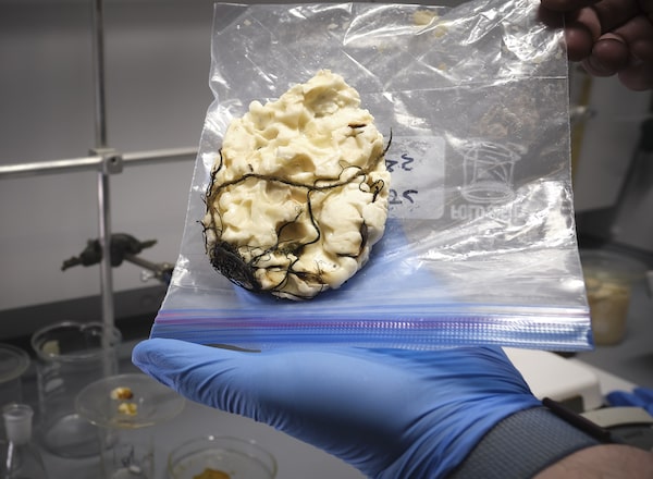 Dr. Kozak has determined the blobs are a mixture of synthetic latex rubber and polyvinyl acetate (PVA), a synthetic plastic polymer that is the active ingredient in glue.Greg Locke/The Globe and Mail