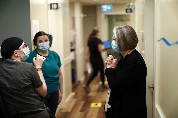 Interim executive director Karen Morgan speaks with staff at Shoreline Medical in Sidney, B.C., on Oct. 20.CHAD HIPOLITO/GM