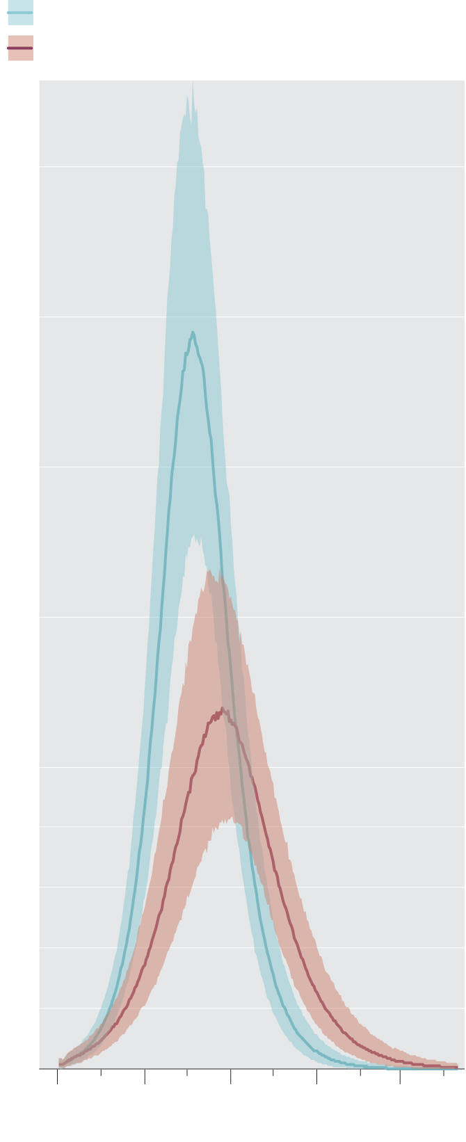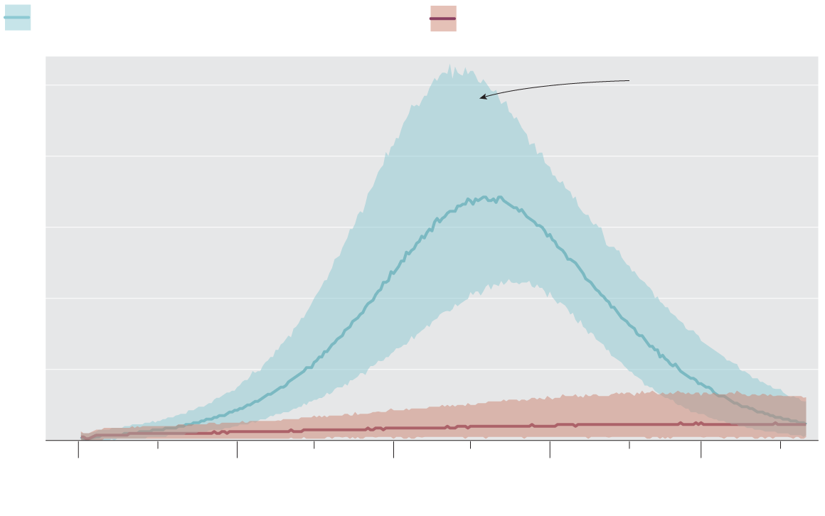 In the four scenarios below, the model used is based on one developed by Dr. Colijn and her colleagues that was published in the journal Science earlier this year. It uses age and essential worker contact rate information from demographic data, and captures what is know about disease susceptibility, severity and vaccination patterns. The results reflect total infections, including asymptomatic or unseen cases of COIVID-19. Reported cases, hospital stays and deaths will each have their own curves, but they will rise and fall in lockstep with the infection rates shown.