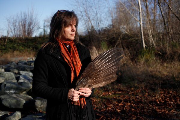 Patricia Dawn of the Red Willow Womyn's Society is photographed with an eagle wing, which symbolizes asking the creator for protection.CHAD HIPOLITO/The Globe and Mail