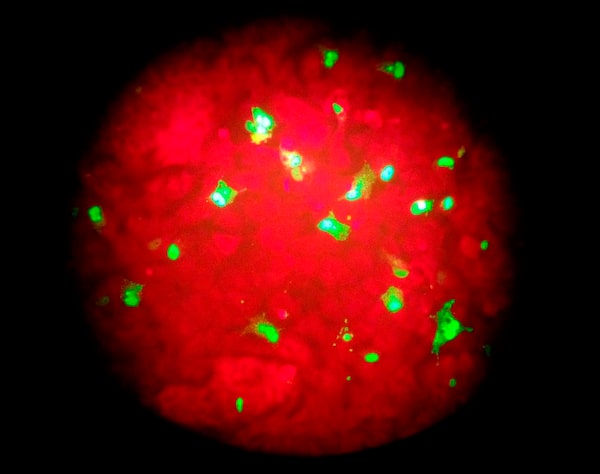 Flu-infected human cells glow green under fluorescent light. Today, epidemiologists can analyze the form and genome of viruses to discern where they came from; not so in 1918.Ted S. Warren/The Canadian Press