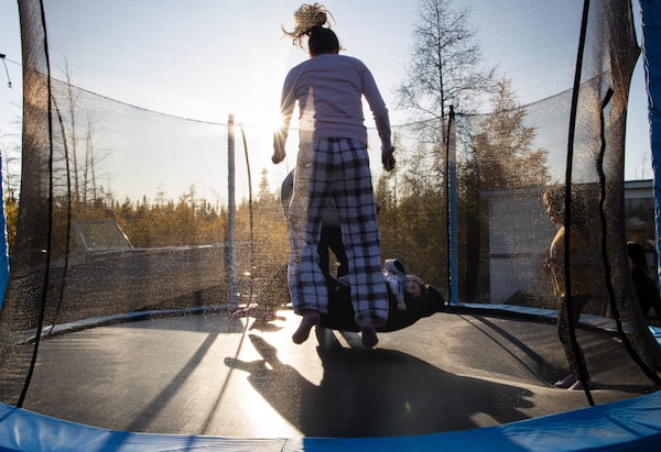 Some of the Beardy children and their cousins play in the back of the Beardy family home in Bird, on Fox Lake Cree Nation, in mid-September.