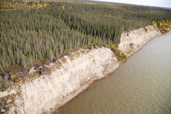 The woods here are unlike those of Southern Canada. Within moments of stepping in, you’re swallowed by trees, sand flies and mosquitoes. It’s hard to see much beyond a few steps. At times, the ground is boggy and there are scant defined trails. One misstep and you’ll be knee-deep in muskeg or clay near the river.