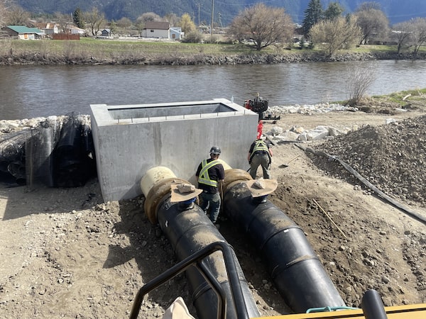 Water pumps sit at the ready on a river bank in the British Columbia border community of Grand Forks, where people are hustling to get ahead of a deluge of melting snow and heavy rainfall.HO/The Canadian Press