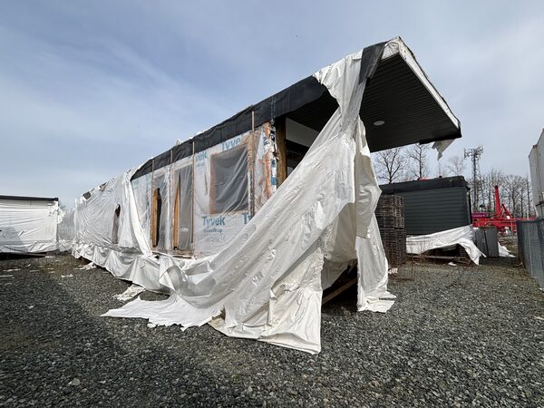 The Little Mountain units, which originally cost $7.4-million, have been sitting in the Langley storage facility since 2021, perched on wooden blocks and wrapped in heavy-duty plastic that has shredded in places after years outside. There are signs of mold in the walls. BC Housing has paid about $600,000 to store them for the last four years, according to the agency’s financial statements.