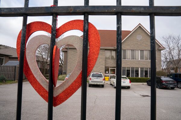 A heart hangs on the fence at Anson Place care centre in Hagersville, Ont., this past April.Frank Gunn/The Canadian Press