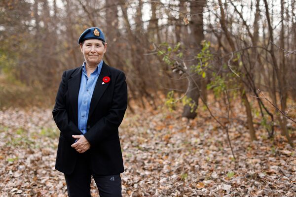 Kareth Huber’s father was an aircraft mechanic in the Royal Canadian Air Force. “We were posted everywhere across Canada as well as over in France,” she says of her childhood. She joined the military when she was 17 years old, becoming a safety systems specialist in the Royal Canadian Air Force. She was a victim of Canada’s purge of LGBTQ military members in 1976. She continues to suffer from PTSD as a result of the experience. She will commemorate Remembrance Day standing on her doorstep. “I’m going to be thinking of my history. I’m going to be thinking about how far the military has come. I’m going to be thinking of all of the people that gave up their lives in previous wars,” she says.