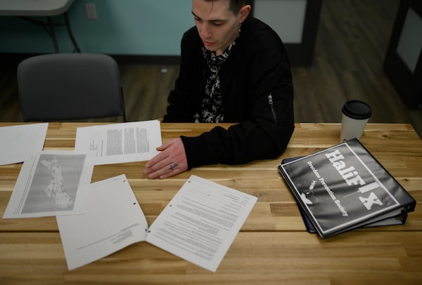 Bonn goes through collected data and letters of support at a partnering health care facility in the North End of Halifax on April 15, 2019.Darren Calabrese/The Globe and Mail