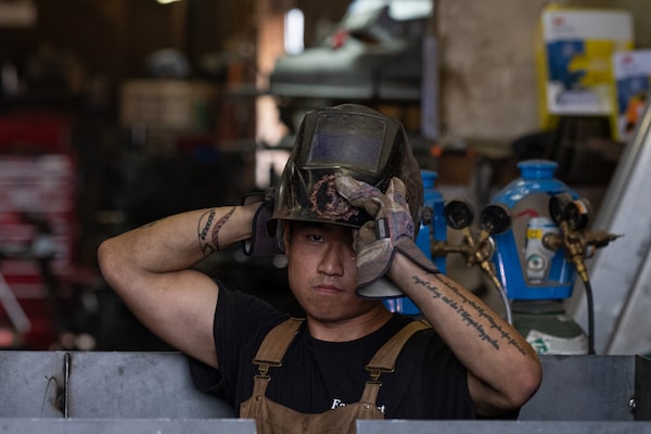 Simon An, a 21-year-old from South Korea, works as a welder at Wedgeport. He's hoping to get his permanent residency through the yard and a provincial immigration program.