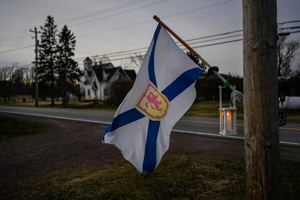 A Nova Scotia flag and single candle hangs on a pole on Highway 2 in Great Village neighbouring Portapique, N.S.Darren Calabrese/The Globe and Mail