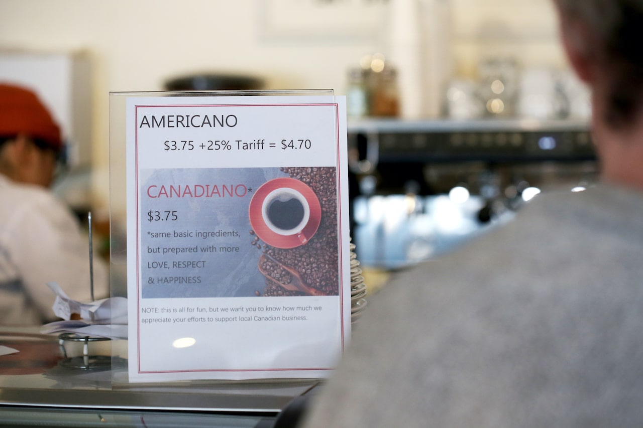 Matt Allard, city councillor for St. Boniface, believes the polling numbers on French-language issues are quite telling. As he sips a coffee at the bustling Le Croissant bakery on a sunny Friday morning, he points to a cheeky sign next to the baristas: With a photo displaying an Americano, it shows that a Canadiano would be cheaper to purchase at $3.75 because the former would cost $4.70 after a 25-per-cent tariff charge.