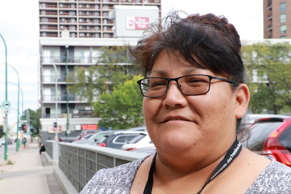 Bernadette Sumner poses for a photo outside a Winnipeg summit on Jordan's Principle, on Sept. 12, 2018. Sumner says her family struggled for years to get a specialized wheelchair and bed for her 17-year-old son Keanu, who has achondroplasia and is a paraplegic.Kelly Malone/The Canadian Press