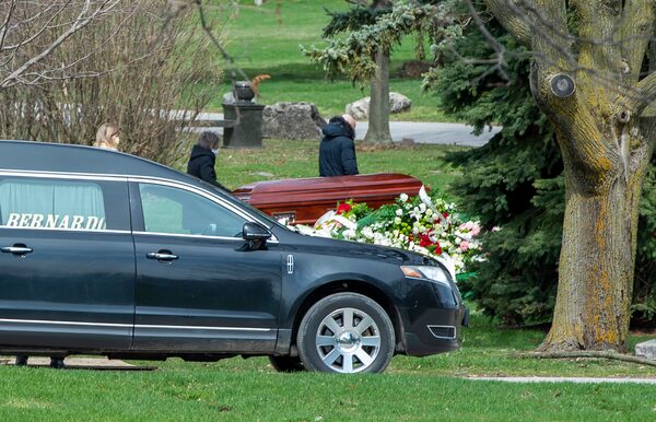 Mourners maintain physical distancing as they pay respects at a funeral in Toronto on Tuesday April 14, 2020. Public Safety Minister Bill Blair, who oversees federal prisons, has said he is discussing options for release with corrections and parole authorities.Frank Gunn/The Canadian Press